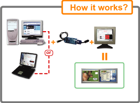 The USB 2.0 VGA Adapter enables you to connect any monitor, LCD, projector to your PC or notebook. You can use it as an extended desktop or as a larger/different display from your main screen. By using USB 2.0 technology, there is no need to open the computer or struggle with compatibility issues related to a second VGA card.